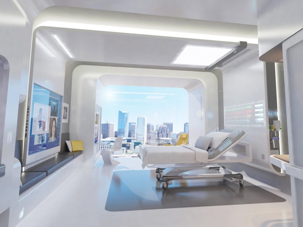 Patient rooms of the future tend to focus of how things look, not how they function. A Tesla 4 door sedan looks similar to cars from decades ago, but embedded within the vehicle design are driver augmentation technologies that enhance safety, comfort and efficiency.